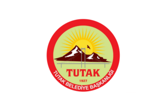 The flag of Tutak (photo) is white with the municipality's emblem in the middle. "Belediye Başkanlığı" means "Municipality Presidency".