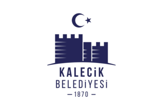 The former flag of Kalecik (photo, photo) was white with the municipality's former emblem, which features a realistic representation of the castle of Kalecik. "Belediyesi" means "Municipality".