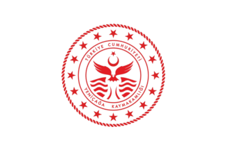 The flag of Yeniçağa (photo) is white with the municipality's emblem in the middle. "Belediyesi" means "Municipality".