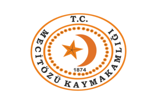 The flag of Mecitözü (photo) is white with the municipality's emblem in the middle. "Belediyesi" means "Municipality". The former flag of Mecitözü (photo) was white with the municipality's former emblem. "Belediye Başkanlığı" means "Municipality Presidency".
