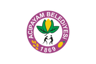 The flag of Acıpayam (photo) is white with the municipality's emblem in the middle. "Belediyesi" means "Municipality".