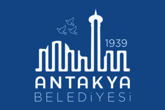 The former flag of Antakya (photo) was white with the municipality's emblem (image). "Belediyesi" means "Municipality".