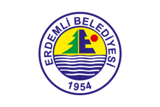 The flag of Erdemli (photo) is white with the municipality's emblem. "Belediyesi" means "Municipality".