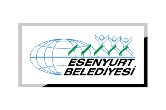 The flag of Esenyurt (photo, photo), also used vertically (photo), is white with the municipality's emblem. "Belediyesi" means "Municipality".