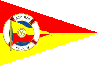 The flag of the Göztepe Sailing Team (photo, photo, photo) is white with the team's emblem, which itself features a horizontally divided yellow-red burgee with an emblem.