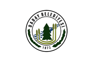 The flag of Daday (photo, photo, photo, photo) is white with the municipality's emblem in the center. "Belediyesi" means "Municipality".