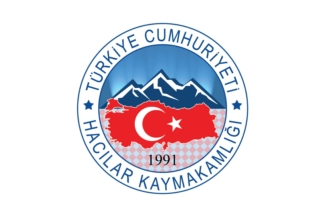 The flag of Hacılar, used horizontally (photo) or vertically, is white with the municipality's emblem, which was adopted in March 2017 by the Municipal Council. "Belediyesi" means "Municipality".