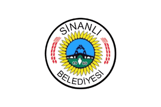 The flag of Sinanlı is white with the municipality's emblem. "Belediyesi" means "Municipality".