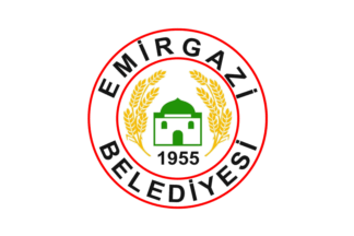 The flag of Emirgazi (photo) is white with the municipality's emblem in the middle. "Belediyesi" means "Municipality".