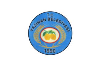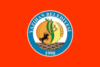 The flag of Yazıhan (photo) is orange with the municipality's emblem. The former flag of Yazıhan (photo) was white with the municipality's former emblem. "Belediyesi" means "Municipality".