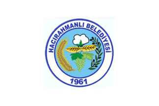The flag of Hacırahmanlı is white with the municipality's emblem. "Belediyesi" means "Municipality".