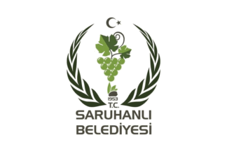 The former flag of Saruhanlı (photo, photo) is white with the municipality's former emblem. The motto reads "Grapes' Capital". "Belediyesi" means "Municipality".