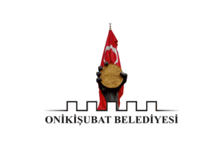 The flag of Onikişubat, used horizontally (photo, photo) or vertically (photo), is white with the municipality's emblem. "Belediyesi" means "Municipality".