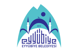 The flag of Eyyübiye (photo) is white with the municipality's emblem in the middle. "Belediyesi" means "Municipality".