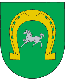 "Vert; horse argent in horse-shoe or.