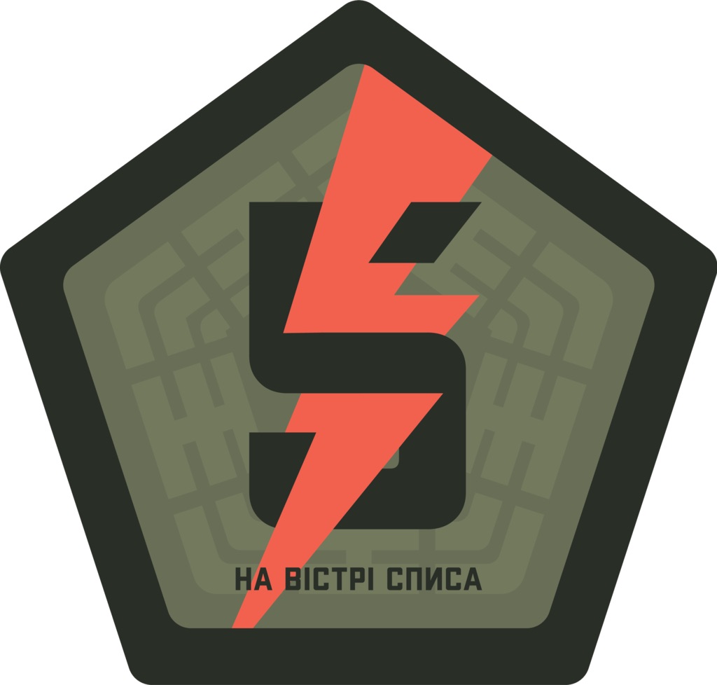 Inscription: "At the point of the spear" (на вістрі списа)