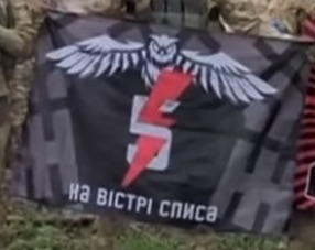 The flag of the 5th Separate Assault Brigade appeared in a CBS report (not available anymore, see instead the report at the beginning of Jake Broe's video [flags at 0:52]) about the liberation of Andriyivka and Klishchiivka on 17 September 2023 by Ukrainian troops, this brigade being one of them. On the still image its flag is presented alongside the national flag, the flag of the 80th Air Assault Brigade and the Liut Brigade.