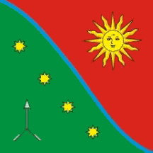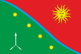 red field and a white forked arrow and four yellow stars on the green field.