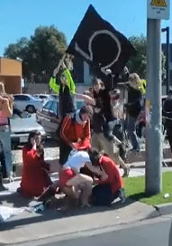 This flag was shown as part of a [YouTube video] comic video claiming it to be a flag of a rebel movement [factitious] being covered in a satire news skit. From what I understand about the video, the flag represents a group that is demonstrating. I asked on Reddit and was told it could be the flag of a college sorority or just a revolutionary flag made for the video. I was wondering if anyone here would know about it.
