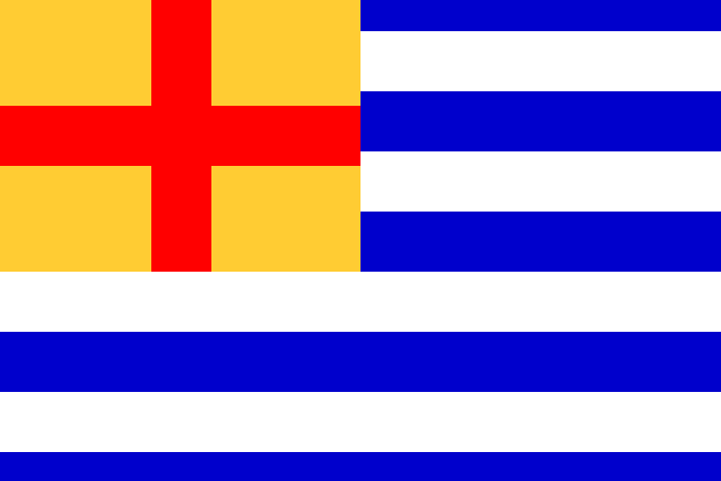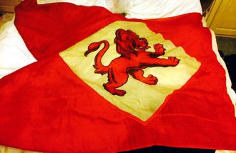 One other detail, but it may not mean anything, the Arms on the smaller flag are in the center of the flag, while on the larger flag, it is offset slightly toward the hoist. the flags are currently in storage since I am in the process of moving and I cannot get to them. I have tried to recreate how they look as accurately as possible by copying a flag from the Internet and just adding the white fimbriations. I am dying to find out what these flags are, they are in nearly brand new condition aside from the obvious effects of aging on the material, which, considering their age, is remarkable. If you can find out what they are, please let me know. I hope this image helps.