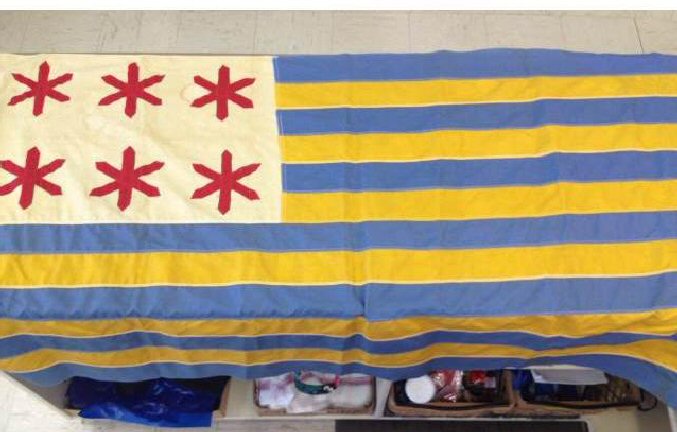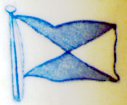 It apparently had a blue and white horizontally striped field, canton of blue and white checkers (if I'm picturing it right). Any ideas?
