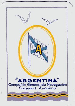 Since the flag strongly suggests the company name starts with an "A", I´d go for the one staring us in the face: "Argentina". Or in full: Compañia General de Navegación Argentina, Sociedad Anónima. Would the "card" be a playing card, by the way, as there's a mention