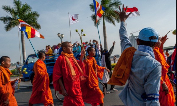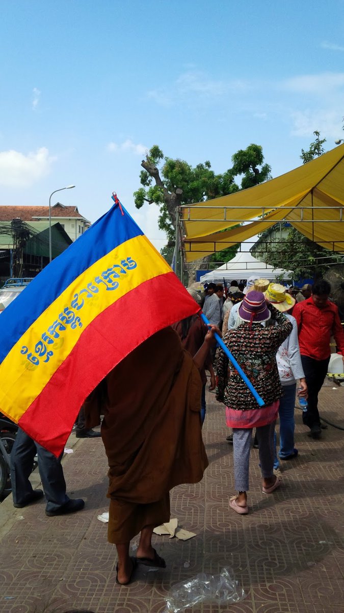 I was wondering if anybody has seen this flag before or if it´s a new UFE find. The picture was taken in October of 2013 during the Cambodian anti-government protests. The picture's caption reads: "A monk carrying a flag" which leads me to think it is a Buddhist flag