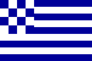 "At first I thought it was a Greek flag, because that's what it looked mostly like. But then I noticed that the canton instead of the cross had a blue/white checker pattern, like the maritime signal flag for 'N', but without so many squares, I think. I don't think there was anything further on the flag, but I couldn't tell for sure as it was hanging in pretty low wind."