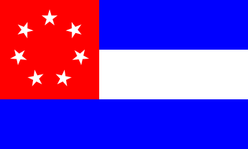 Miami Independence Movement claims to struggle for the independence of Miami-Dade county from both Florida and USA, stating that the area suffers from a "federal dictatorship" imposed by the U.S. government; although nothing is said about the state of Florida, it is obviously implicated that its government is at least the accomplice of the quot;dictatorship" . On their webpage (visible only in Microsoft Internet Explorer - Firefox displays only the page source): www.angelfire.com/fl4/Mim/Miami_Independence_Movement above the exposure of their goals and motivations, the flag of the movement and/or proposed Republic of Miami is shown, which is clearly derived from the Stars and Bars, first national flag of the Confederate States of America, but with seven white stars on a red canton and blue-white-blue bars; the stars are pointing away from the center of the circle they are arranged in. No explanation of the design is given; the first idea to suggest itself is that they just took a well-known secessionist flag, which was originally used in the area as well, and modified it. Unfortunately, the meagre content of the site has remained unchanged since early 2009, when I first reached it, so it is unclear whether the movement still exists, or has it ever existed outside the Web, not to mention the lack of any detailed information about it.