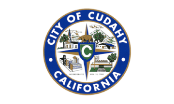 The city flag can be seen in the corner of the council chambers. Seal on a white ground.