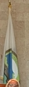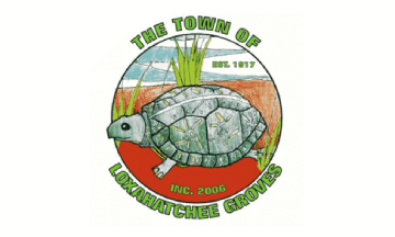 Recent photo of flag in the city council chamber, showing that the seal is as usually shown: https://loxahatcheegrovesfl.gov/ImageRepository/Document?documentID=1613