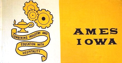 The city flag in actual use is the city's logo on a white background (logo is seen in the left hand bar of their website): www.city.ames.ia.us/