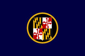 The colors of the Maryland National Guard can be seen in photographs online, particularly at www.army.mil and www.md.ngb.army.mil. The flag features the should patch of the Maryland Army National Guard centered on a dark blue field. The circular patch contains the shield from the Maryland state coat of arms on a black ground encircled by a gold ring.