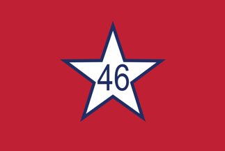 The first state flag was used from 1911 until 1925. Since Oklahoma was the 46th state to join the Union, the blue, sans serif number 46 was placed inside the white star fimbriated in blue. After the October Revolution in Russia, some citizens considered that design as too Soviet, as too revolutionary. The first, "red" flag of Oklahoma was replaced with the current, "blue" standard in 1925. Dejan Mraović,