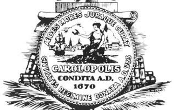 figure are the words, “Carolopolis Condita A.D. 1670”, (Charleston founded