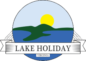 The logo depicts the sun rising over Lake Holiday, along with a banner with the lake's name and state name.