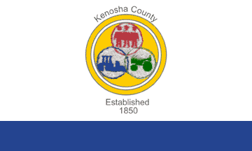 How close does the emblem on the flag matches the county seal? I'm not sure, but it seems close to the graphic on www.co.kenosha.wi.us/plandev/smart_growth/index.html. On the flag the outer ring has disappeared, with only part of the text following the arc. The field colour of the emblem has turned yellow on the flag, and the rings that are left have changed sizes, but those are easily measured.