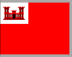 Organizational Flag, The Engineer Training Center (Fort Leonard Wood, MO). Training centers (infantry, armor, field artillery and branch immaterial) all have flags of this pattern in branch colors (red and white for the Corps of Engineers) with the appropriate branch badge in the canton. For brigades of training centers, a numeral is added in the upper hoist; for battalions, another numeral is added below the canton.
