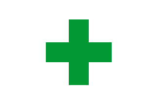"The flag is white with a 18-inch hoist by 2-foot 3-inch fly, on which is a green cross. The flag is authorized for veterinary field units and detachments."