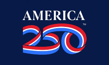all-caps, black serif font that says “America,” above a “250”, depicted as a