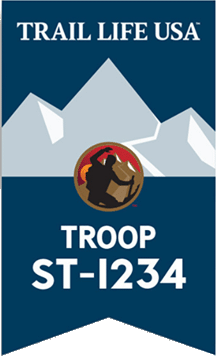 fess the banner with Trail Life USA logo at center point. "Troop" with