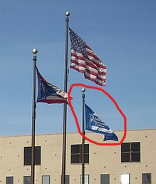 The flag of the Columbus State Community College is a blue field with the