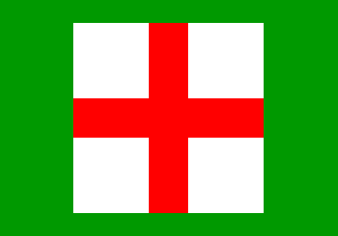 One of the nicer house flags: A green field with a large white square bearing a