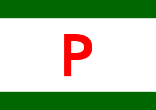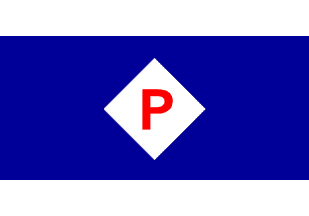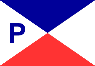 I've found a house flag. It was merely a white swallowtail with a red letter P.