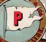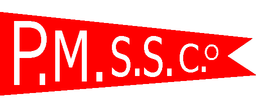 Pacific Mail SS Co. According to Loughran (1979) the company sometimes used prior to 1868 a long tapered swallow-tailed pennant, red with narrow white borders top and bottom and the bearing the white letters "P.M.S.S.Co." in descending scale.