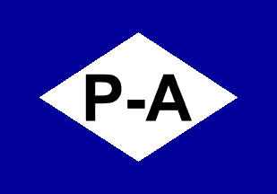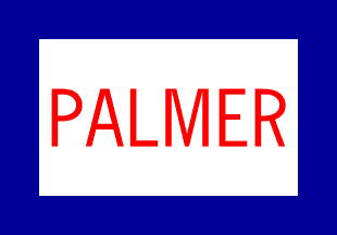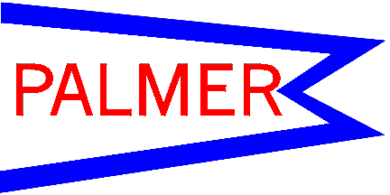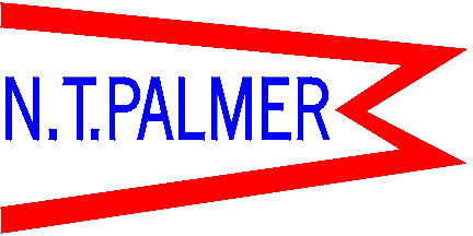 The Palmer Fleet. Lloyds shows as William F. Palmer and Loughran (1979) expands that this schooner owner was not connected with another operator of the same period, Nathaniel T. Palmer of Bath. Nathaniel did not have a houseflag as such, instead placing a large black "P" on the foresail, but his ships did have their own individual flags and with this being named after family members confusion can result. Loughran shows two examples for Nathaniel T., both being white tapered swallowtail pennants, that for the "Palmer" having a blue border except at hoist and the red legend 'PALMER", that for the "N.T.Palmer" having a red border except at hoist and the blue legend "N.T.PALMER".