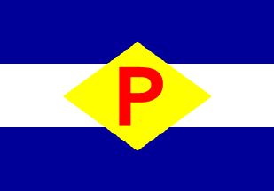with a white triangle in the hoist extending to the fork, and a blue P on the