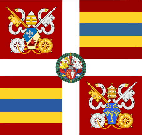 Flags has never existed. Pius X had completely rejected the flag draft. Repond presented the draft of the new flag design already in the year1912 . The pope Pius X was not open to the new ideas.