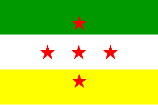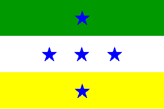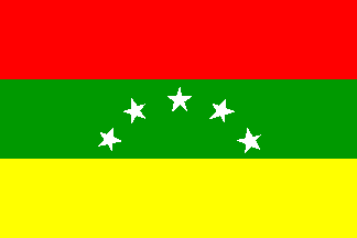 - a flag horizontally divided red-green-yellow with an arch of five white stars on the green stripe, clearly inspired by the flags of Venezuela and of the State of Miranda;