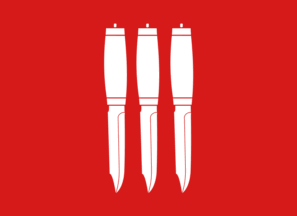 Please note with regard to 2) that charges can be orientated palewise but arranged in fess as per the examples shown below which would be blazoned "... three saw blades palewise in fess".